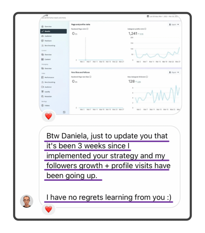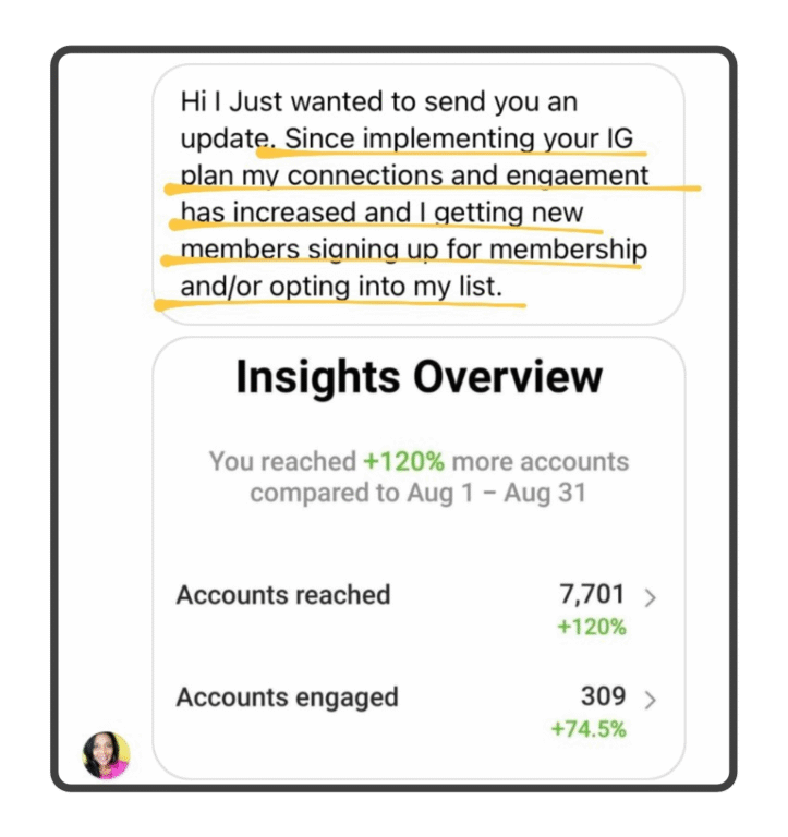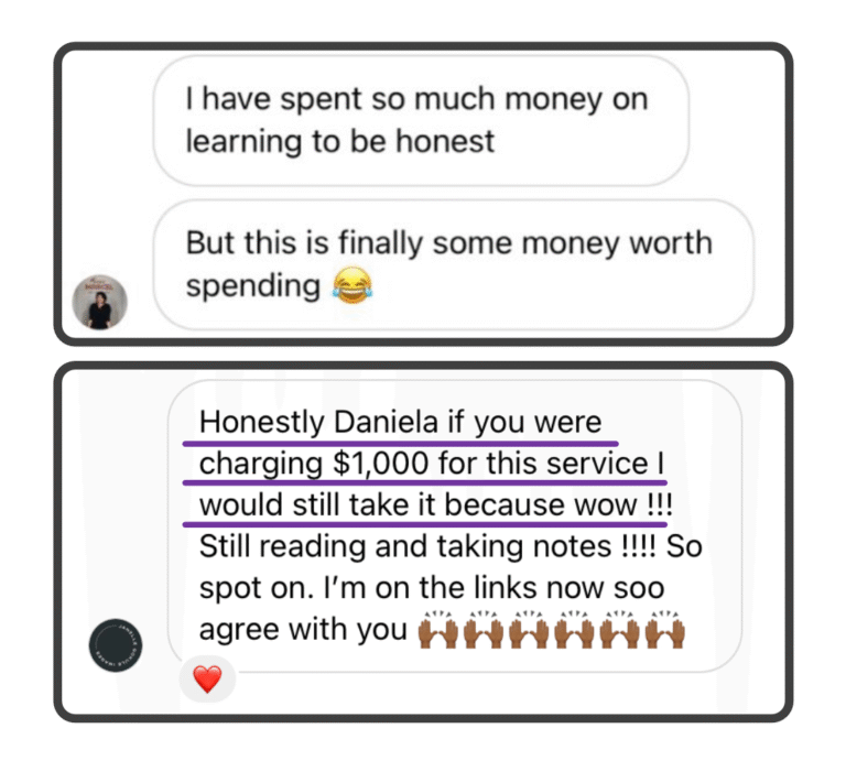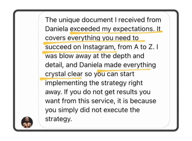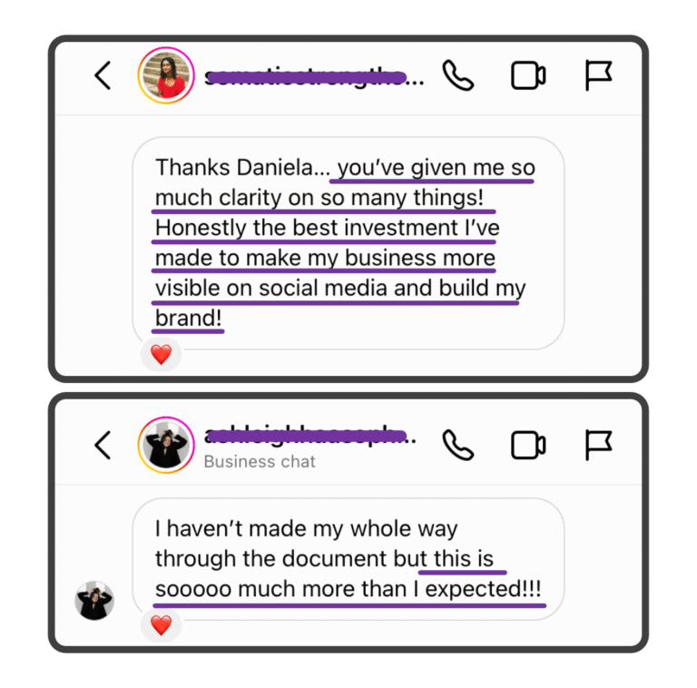 I’ll audit your account and leave notes throughout the strategy, helping you see where you can improve. (And if you’re just starting out or haven’t created your page yet, no worries – I’ll give you feedback once you start posting).